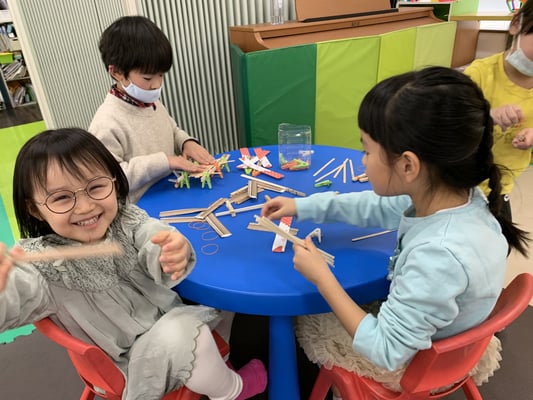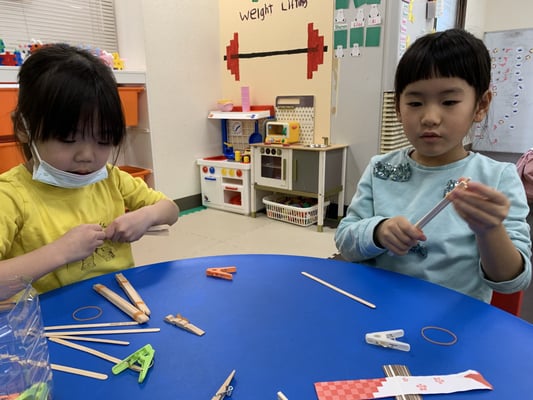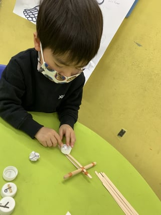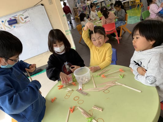 輪ゴムで止まった部分と離れた部分で勢いをつけ