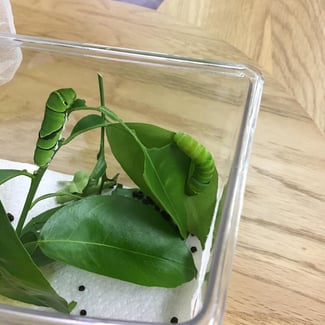 お友達がアオムシさんをスクールに連れてきてくれました。