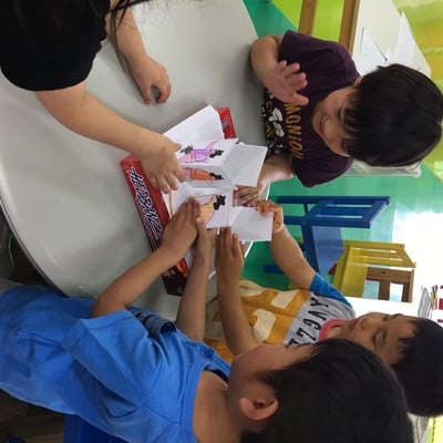 ミャンマーの寺子屋で暮らしながら学ぶお友達へ、あそべる工作のプレゼントを制作し、