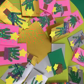 2017/12/20 Our Christmas Cards クリスマスカード制作に取り組みました。 自分の手の形を切り取ったり、好きなデザインにストーンをちりばめたり、 メッセージを書き込んだり、、、、たくさんのプロセスを楽しみました。 お家の方にも見て頂いたでしょうか。 子ども達の頑張って取り組んだ、 ご家族やお友達のための メッセージカードをお楽しみ下さいね! 寒い日が続いています。 暖かくお過ごしくださいませ。 tagPlaceholderカテゴリ: 2017年12月