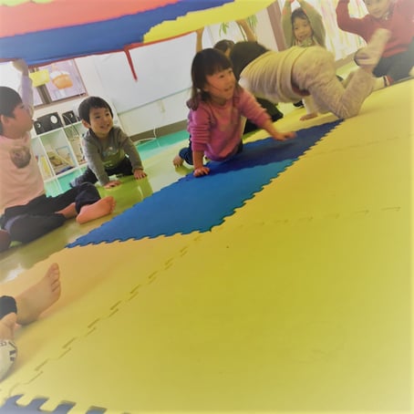 2017/12/20 Parachute Play パラシュートでのゲームを通して、たくさん体を動かしました。 全員で一緒に楽しめるこの活動、子ども達にも大人気です。 お名前を呼ばれた時だけ、パラシュートの下を動いて移動したり、 パラシュートの下のネズミをネコが捕まえたり・・・・・ どのゲームが一番好きだったかな? お家の人とともお話してみて下さいね。 tagPlaceholderカテゴリ: 2017年12月