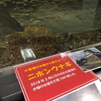 二月に小倉城の水抜きで発見された日本ウナギもこちらで元気に暮らしています。