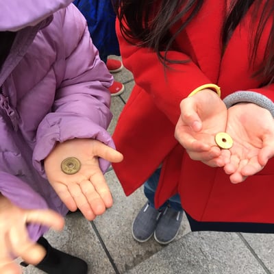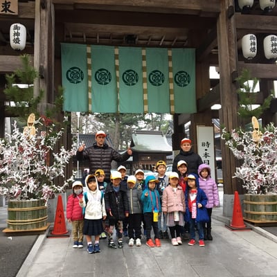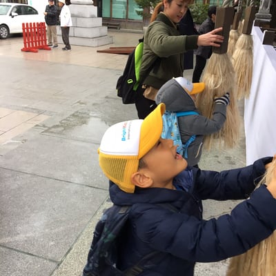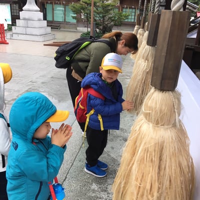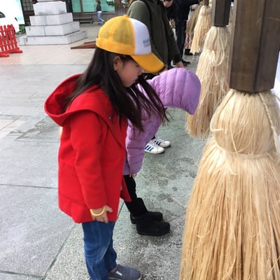 鐘を鳴らし、お賽銭を入れ、お辞儀も上手にできました。