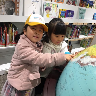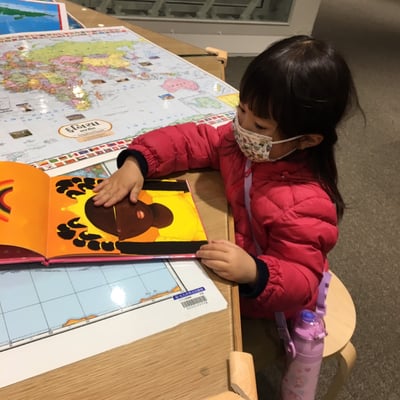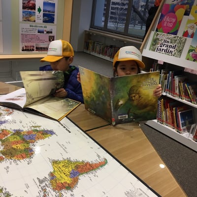 世界の絵本コーナーが大好きな子どもたちです。