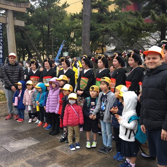 美しく結った日本髪やきれいな着物の装いを間近で見て、子どもたちの目はキラキラしていました。