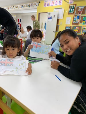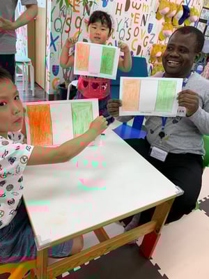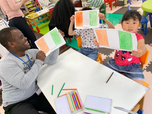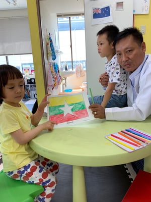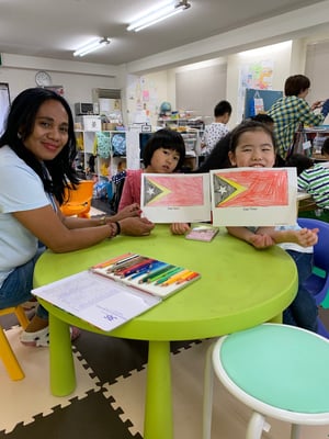 この日は、毎日会う先生の出身国に加えて、9ヵ国からのゲストと一緒にあそんだり学んだりしました。