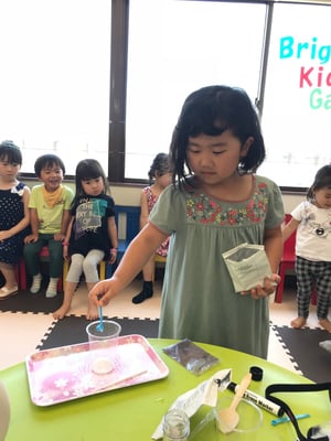 2019/06/16 Dancing Powder Experiments 踊る粉の化学実験 クエン酸とベーキングパウダーの科学実験を行いました。 見た目は「普通」の液体が混ざるとすごい反応を起こす、 ドキドキワクワクのひと時でした。 実験結果を絵や文で記録しています。 おうちでも結果を聞いてみてくださいね。 Well done!! tagPlaceholderカテゴリ: 2019年6月
