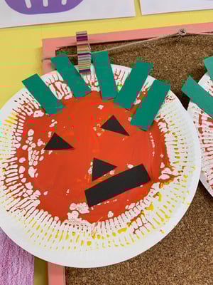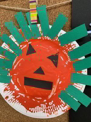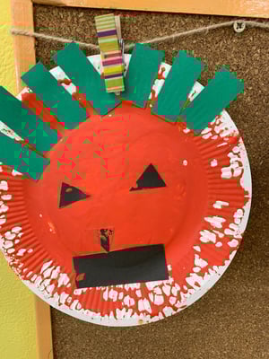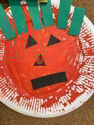 ご報告が遅れましたが、ストローで作ったがいこつと、紙皿で作ったカボチャさんです。