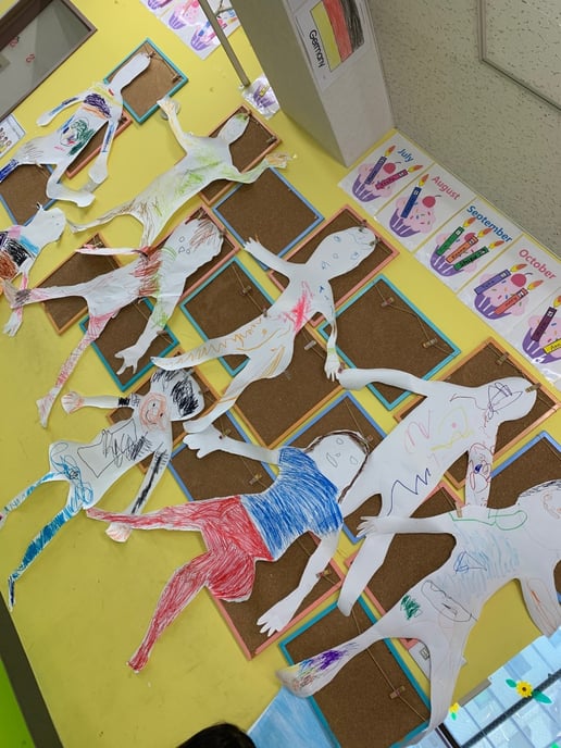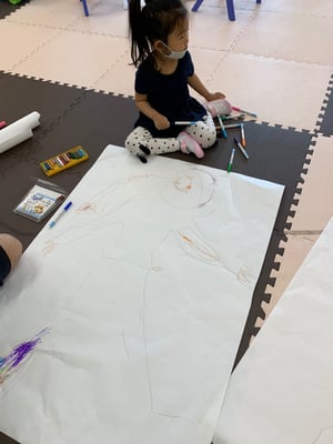 一人一人が等身大の自分を大きな紙に書いて