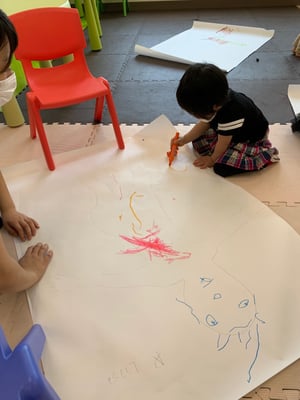 こちらは、アートクラスでの小学部のお友達の様子です。