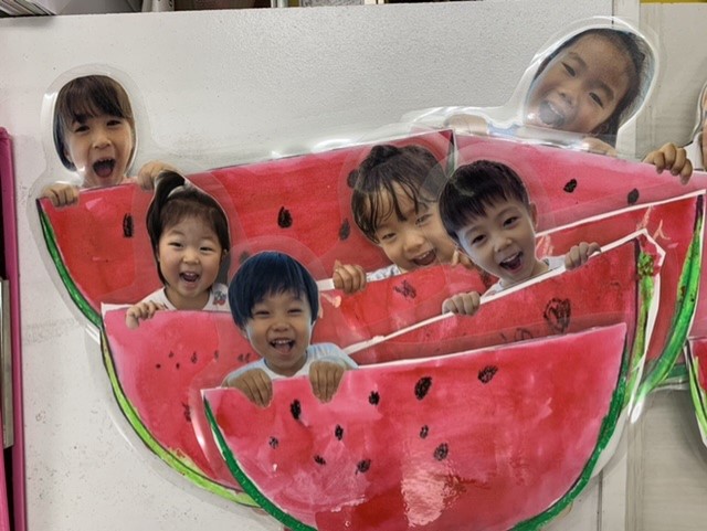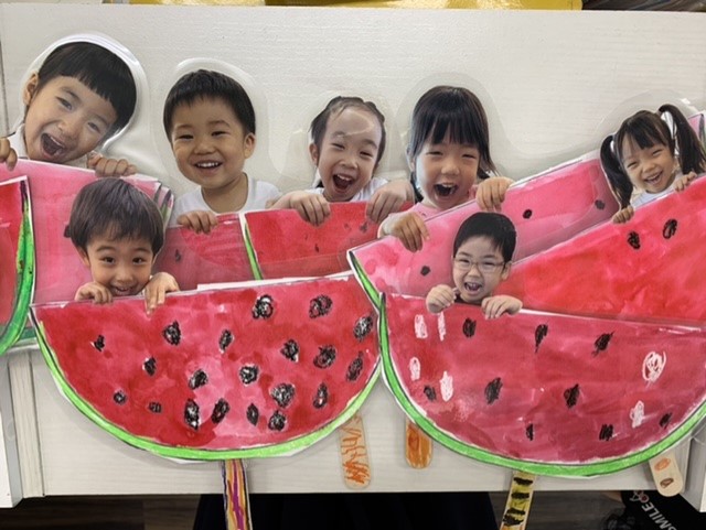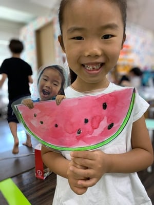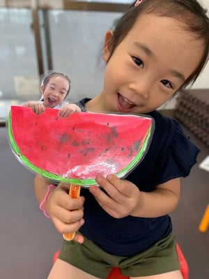 スイカの色や種の形など思い出しながら