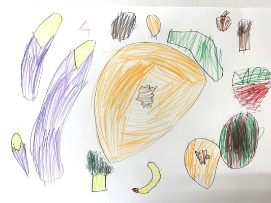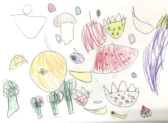 この日は、目の前の野菜や果物を