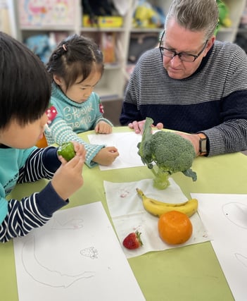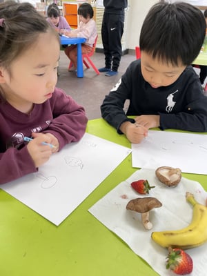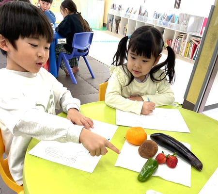お野菜や果物を細かく観察する