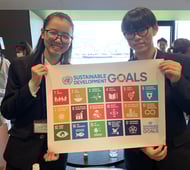 SDGsに関する国際会議が北九州市で開催され、国連職員の方、関係者の方など、約160名が参加しました。その会合の関連行事として、市内の中高生と国連職員の方とのランチミーティングに、スクールの中学生が招待されました。スクールで取り組んでいること、将来の夢などを話し、楽しい交流となりました。