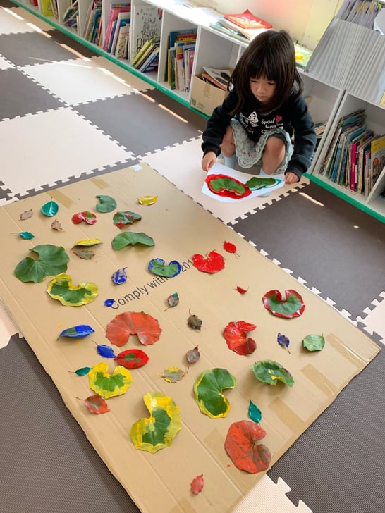 スプリングスクールも後半に入りました。 Botany植物学を学んで来たお友達、この日はアートを通してテーマ学習を楽しみました。