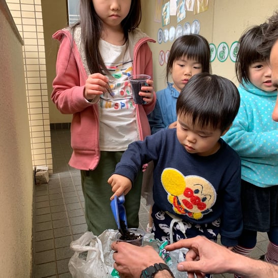 今回のスプリングスクールのテーマは、Botany 植物学。 一人ずつ、土、種を手で感じながら、種まきをしました。