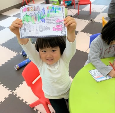 スクールでは、毎月異なる国をテーマに 国旗、地図での位置、食べ物、人々、伝統文化、について学びます。