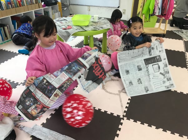 子ども達が大好きなテーマ、太陽系や惑星。 風船と新聞を使って、 お気に入りの惑星を制作するプロジェクト開始です。